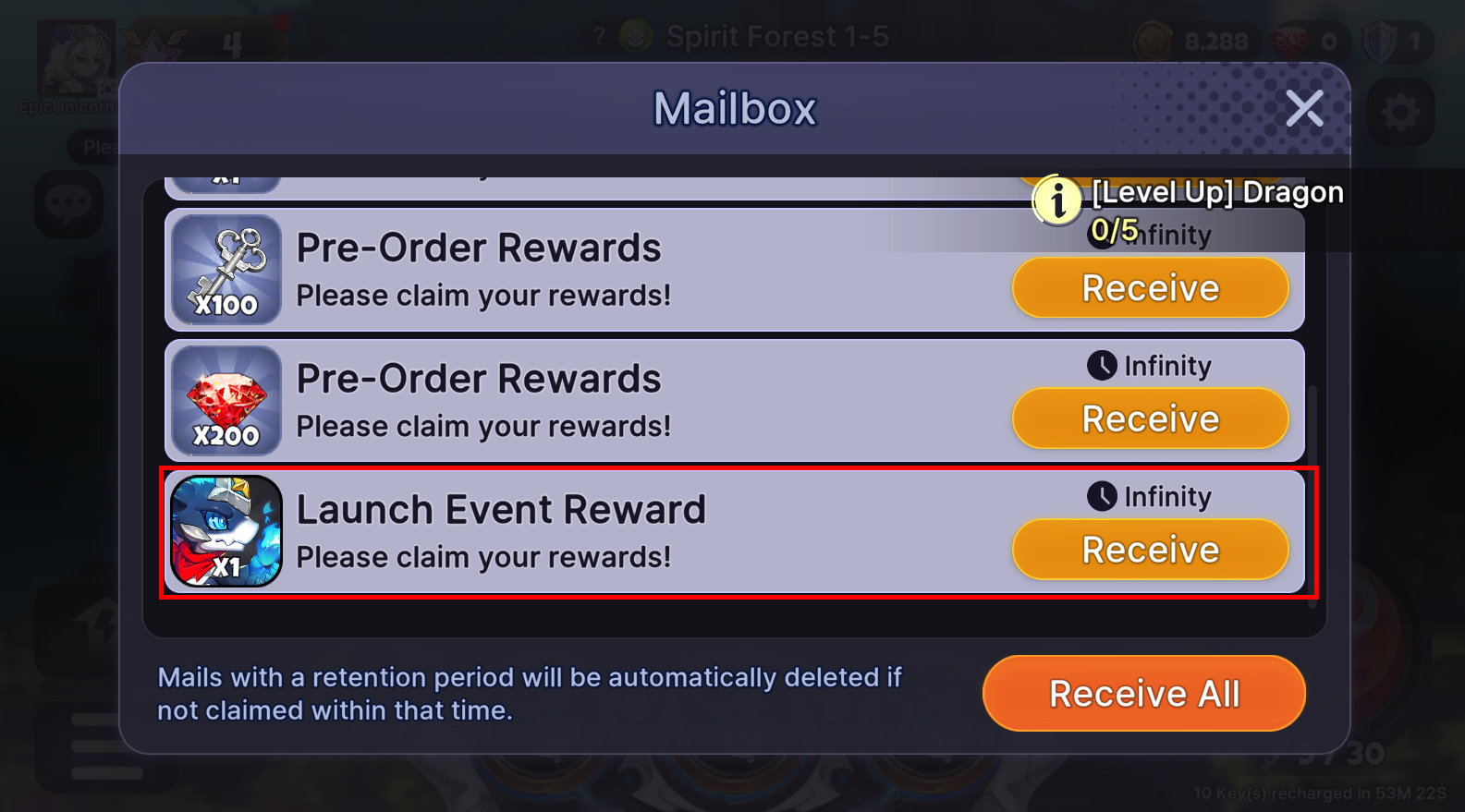 1.The Mastema Dragon will be delivered to your in-game mailbox.