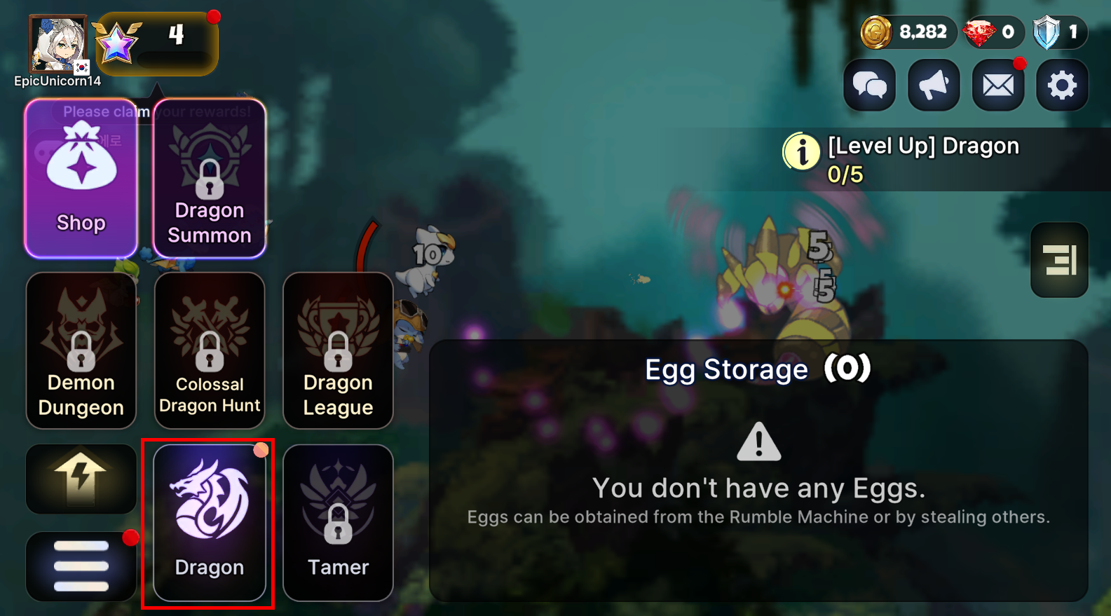 3.Tap the [Menu] → [Dragon] icon at the bottom left to navigate.