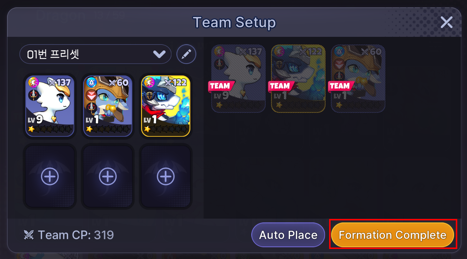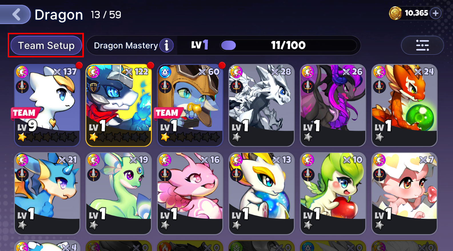 4.In the [Dragon] tab, tap [Team Setup] at the upper left.