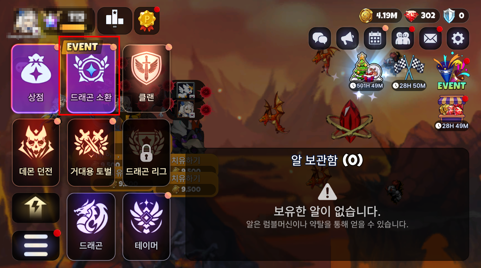 | During the Dragon Summon Festival, an Event label will be displayed on the Dragon Summon icon. |