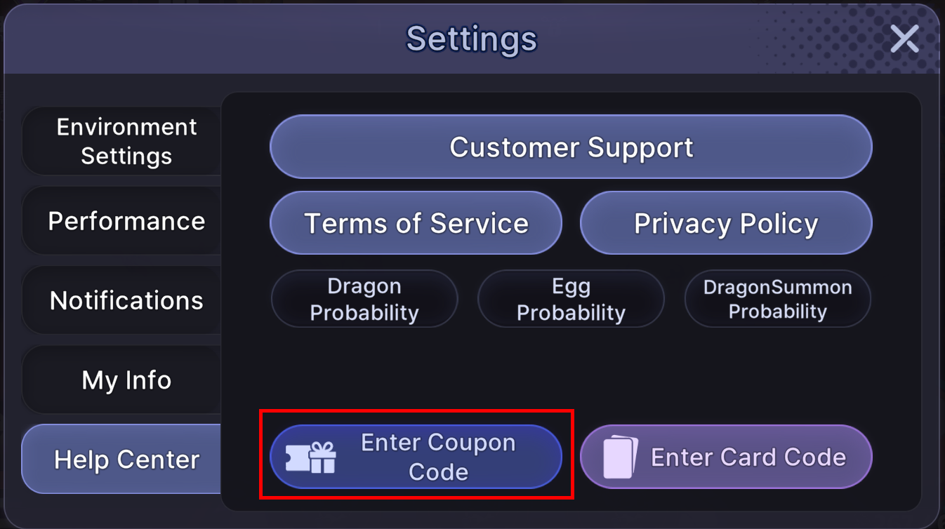 ยท Tap [Settings] โ [Customer Support] โ [Enter Coupon Code] at the top right of the screen to receive your reward.