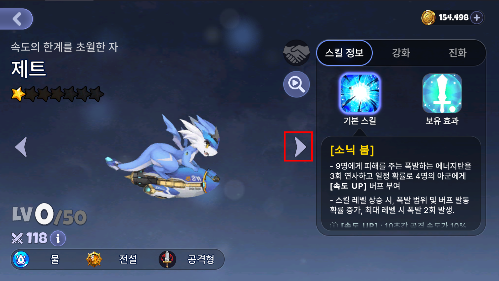 | · 드래곤 정보 내 이동할 수 있는 ‘화살표’ 아이콘이 추가되며, 해당 아이콘 터치 시 다른 드래곤 정보로 이동됩니다. |