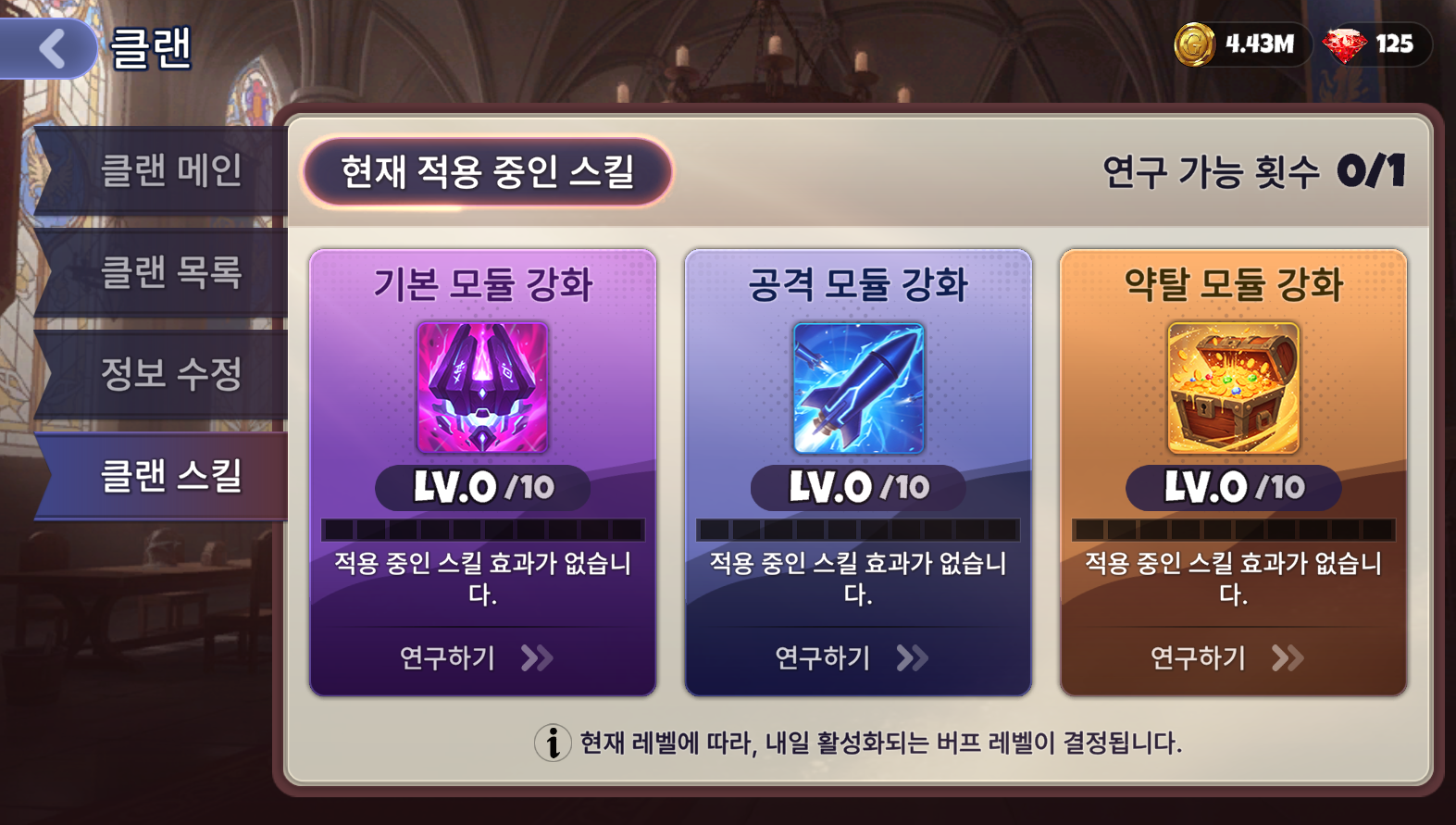 ■ 클랜 스킬별 연구에 필요한 클랜 레벨 표 추가