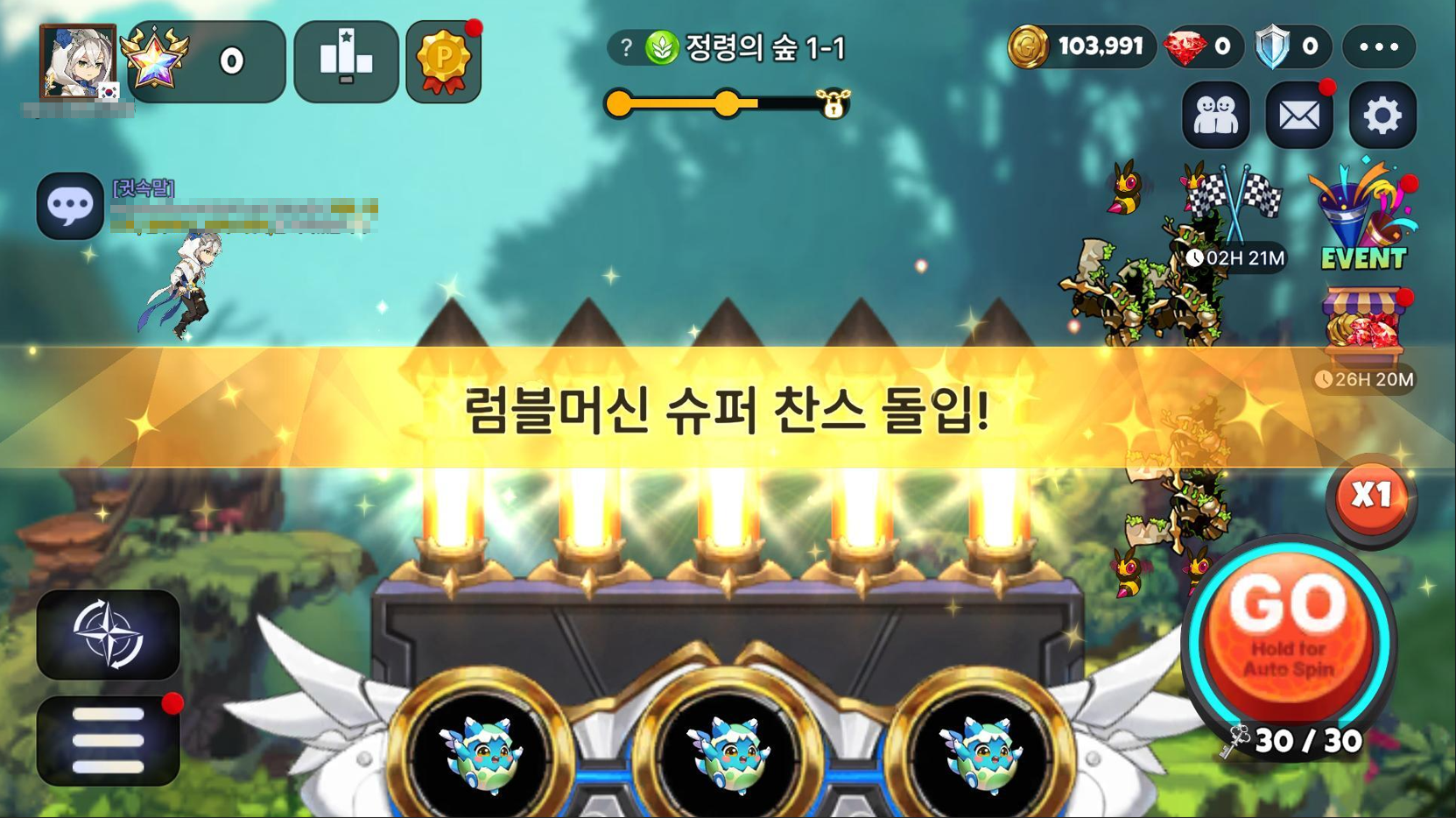 · 퓨리 러시 발동 시, 일반 드래곤 출격 대신 100% 확률로 럼블 머신 슈퍼 찬스가 등장합니다. · 슈퍼 찬스 모드에서는 럼블 머신의 색이 황금색으로 변하며, [보석], [속도 2배 티켓], [희귀~전설 등급 고급 드래곤]을 획득할 수 있습니다. · 럼블머신 슈퍼 찬스는 총 5회를 돌릴 수 있으며, 정해진 횟수를 모두 소진하기 전까지 유지됩니다. · 럼블머신 슈퍼 찬스 도중 스테이지 클리어는 멈추게 되며, 초당 골드 획득량은 정상적으로 획득됩니다. ※ 기존 퓨리 러시 발동 시 등장하던 일반 드래곤은 지급되지 않습니다. |