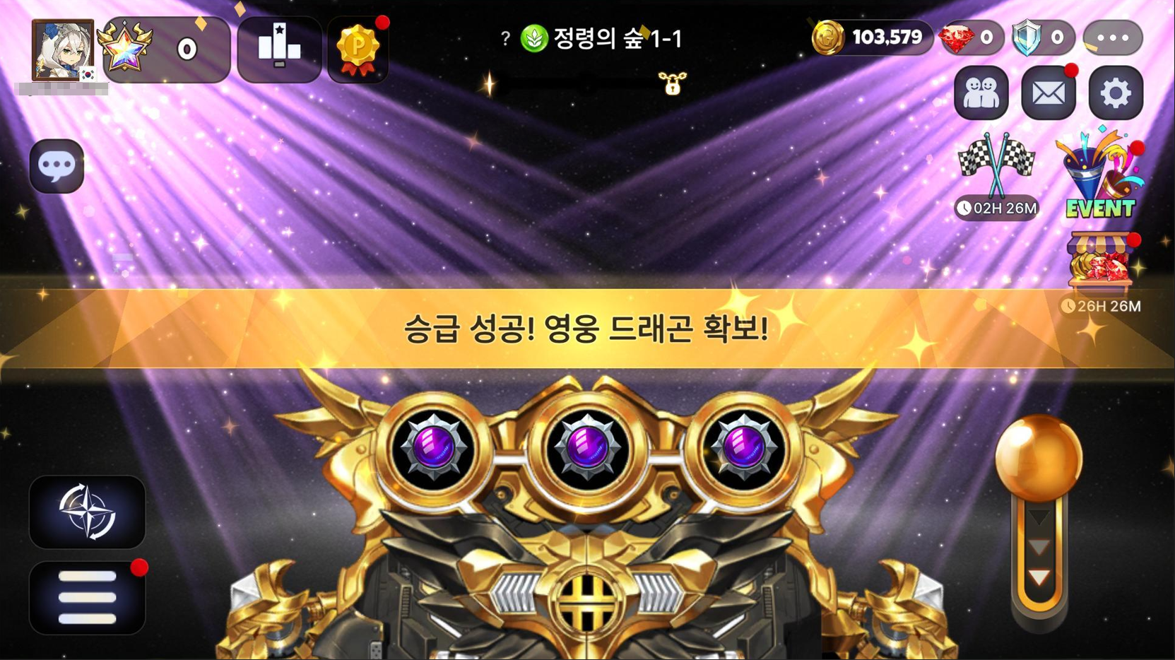 · 슈퍼 찬스에서 희귀 등급 심볼 3Match 시 희귀 드래곤을 획득할 수 있으며, 승급 시도를 하여 성공 시 영웅, 전설 등 상위 등급 드래곤을 획득할 수 있습니다. · 확률에 의해 전설 드래곤은 2배, 3배, 4배, 5배까지 획득할 수 있습니다. |