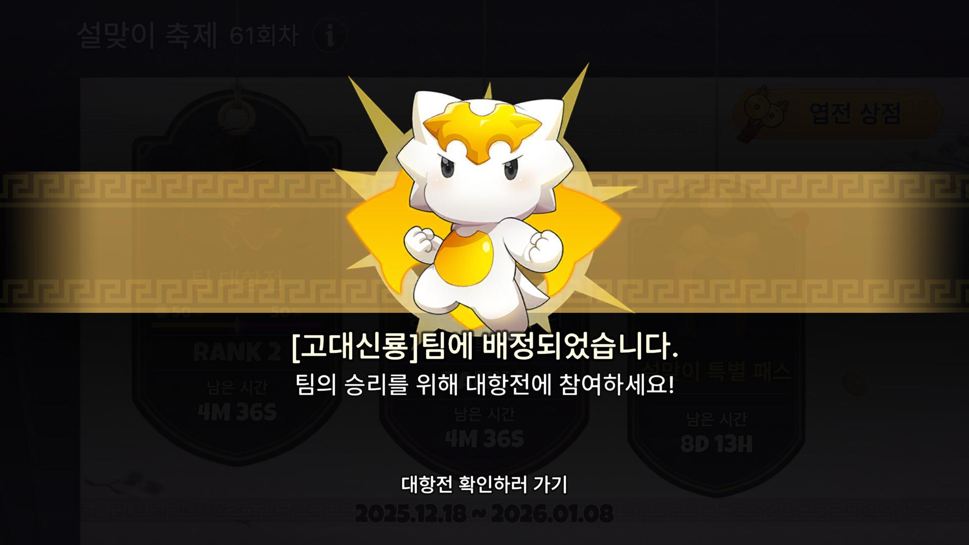 · 설맞이 이벤트 보상은 개발 중 변경될 수 있으며, 변경될 시 추가 공지를 통해 안내드리겠습니다.