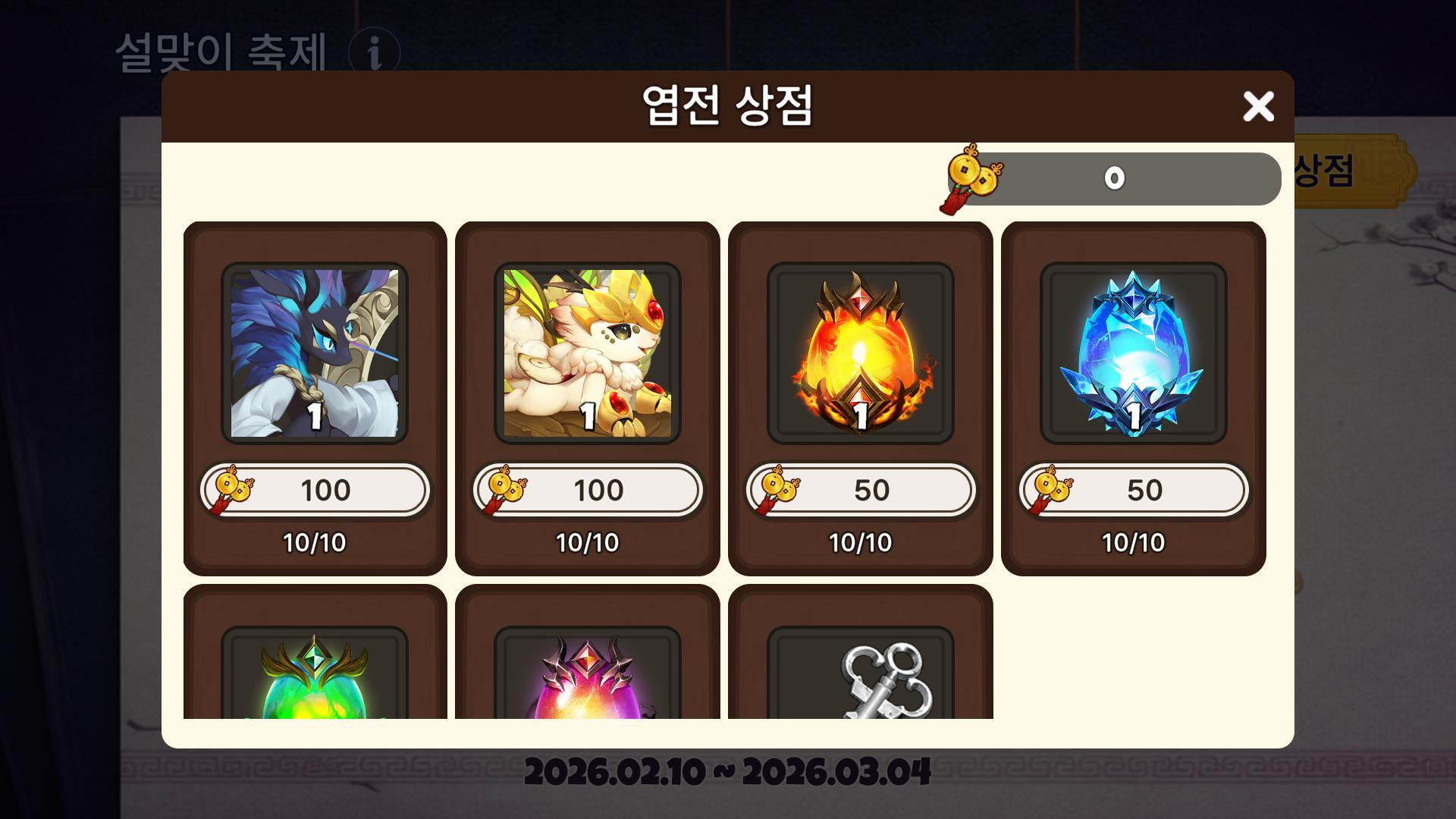 | · 설맞이 축제 이벤트를 참여하고 획득한 엽전을 사용하여 엽전 상점에서 다양한 아이템을 구매할 수 있습니다. |