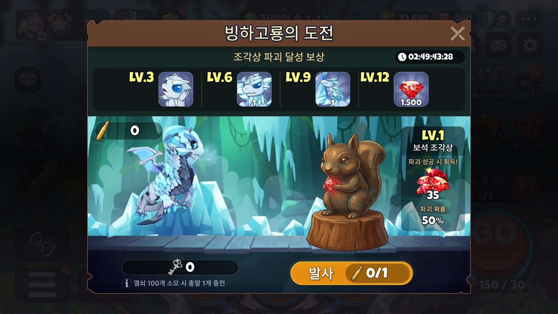 · 빙하고룡의 도전은 메인 화면 우측 상단 [빙하고룡] 아이콘 터치 시 미니게임으로 이동됩니다. · 빙하고룡의 도전은 열쇠를 사용하여 보석을 획득할 수 있는 미니게임입니다. | |||