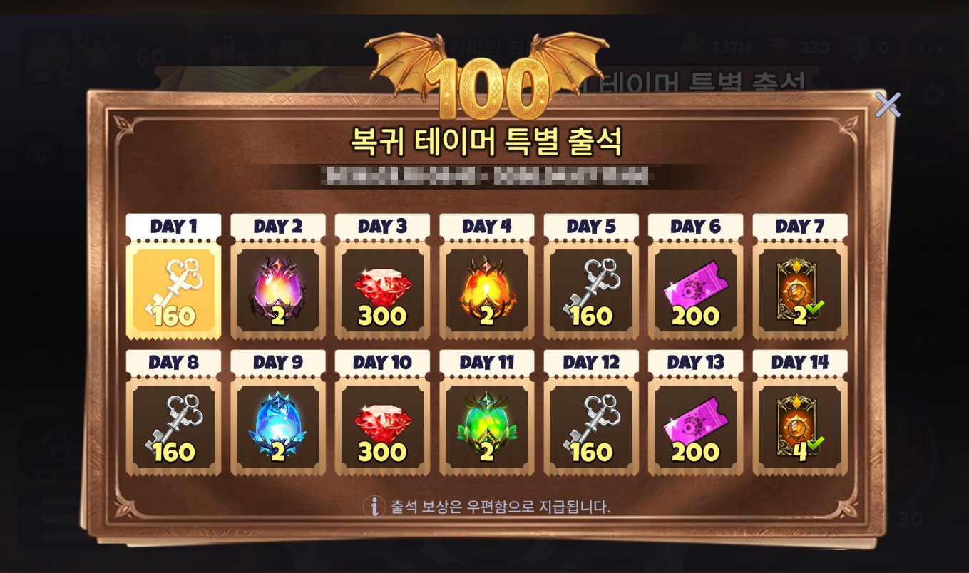 □ 복귀 테이머 4일 출석 이벤트