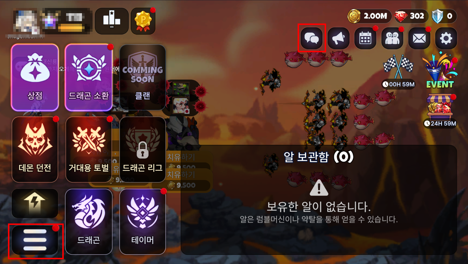 4. 좌측 상단 [메뉴(☰)] → [이벤트] → [신규 드래곤을 찾아라!] 로 이동합니다.