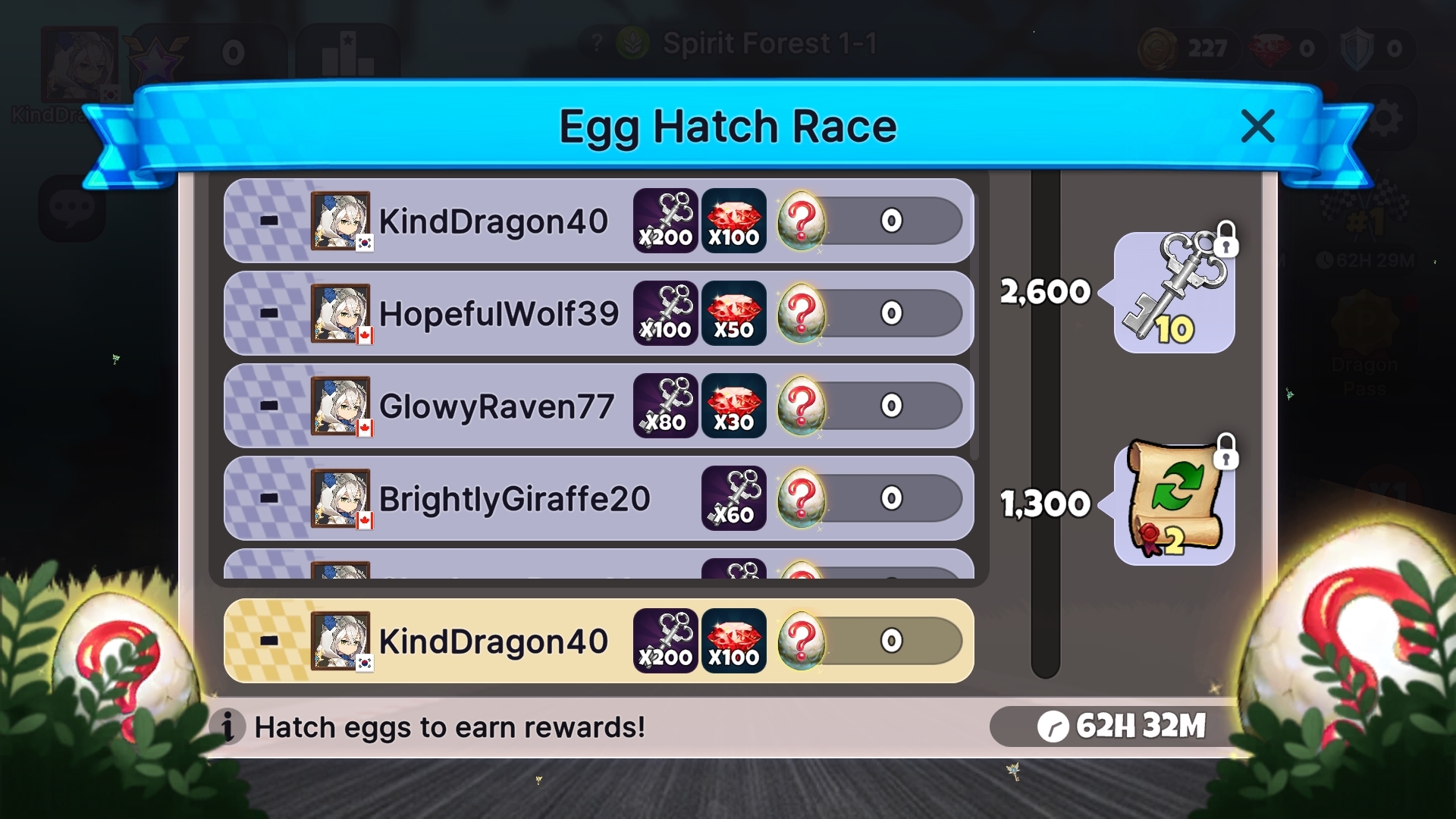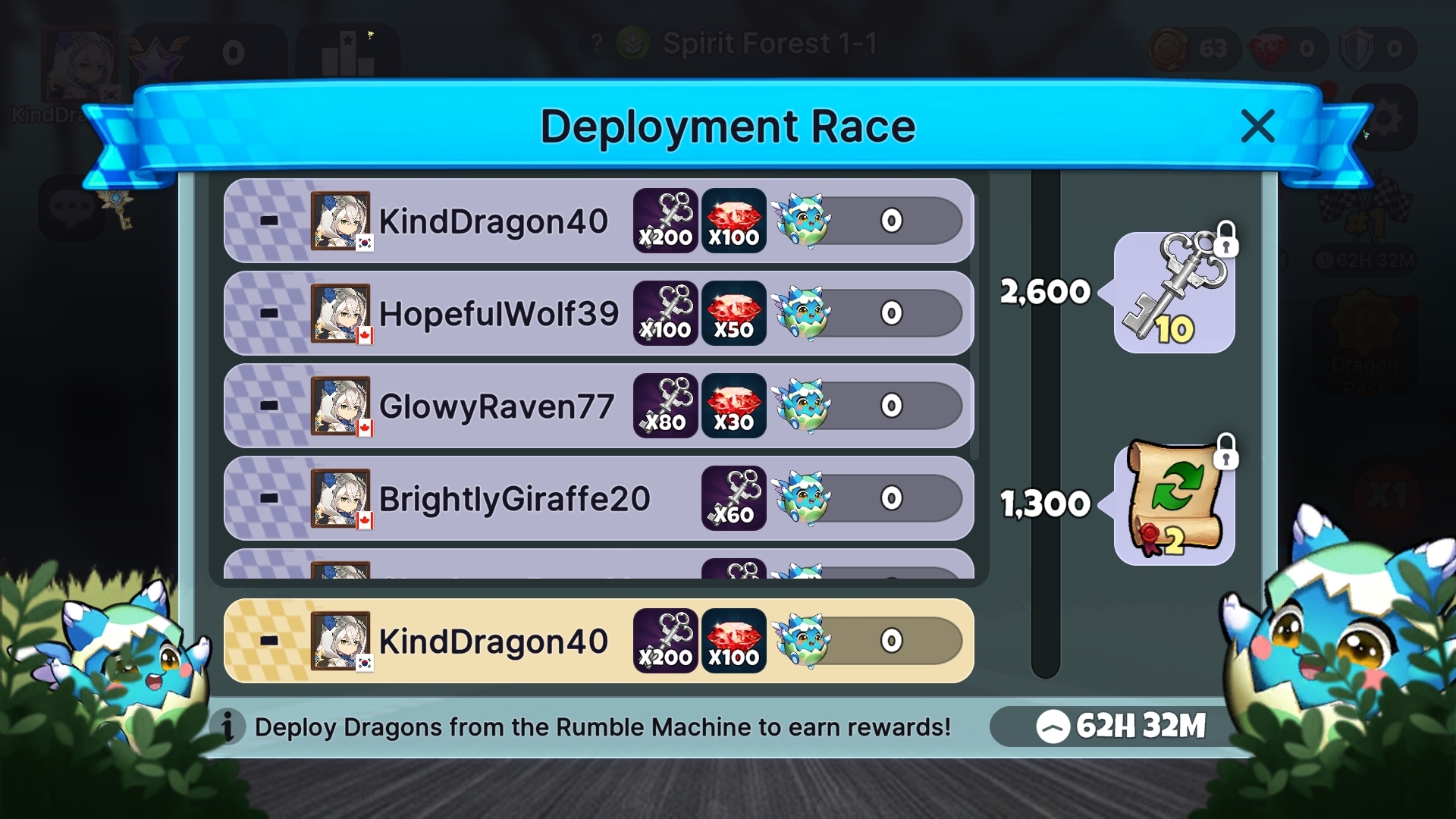 ④ 출격 레이스 - 럼블 머신을 돌리고 일반 드래곤을 획득한 수치만큼 포인트가 지급됩니다. - 1단계 드래곤 1마리 당 1점이 획득됩니다. |