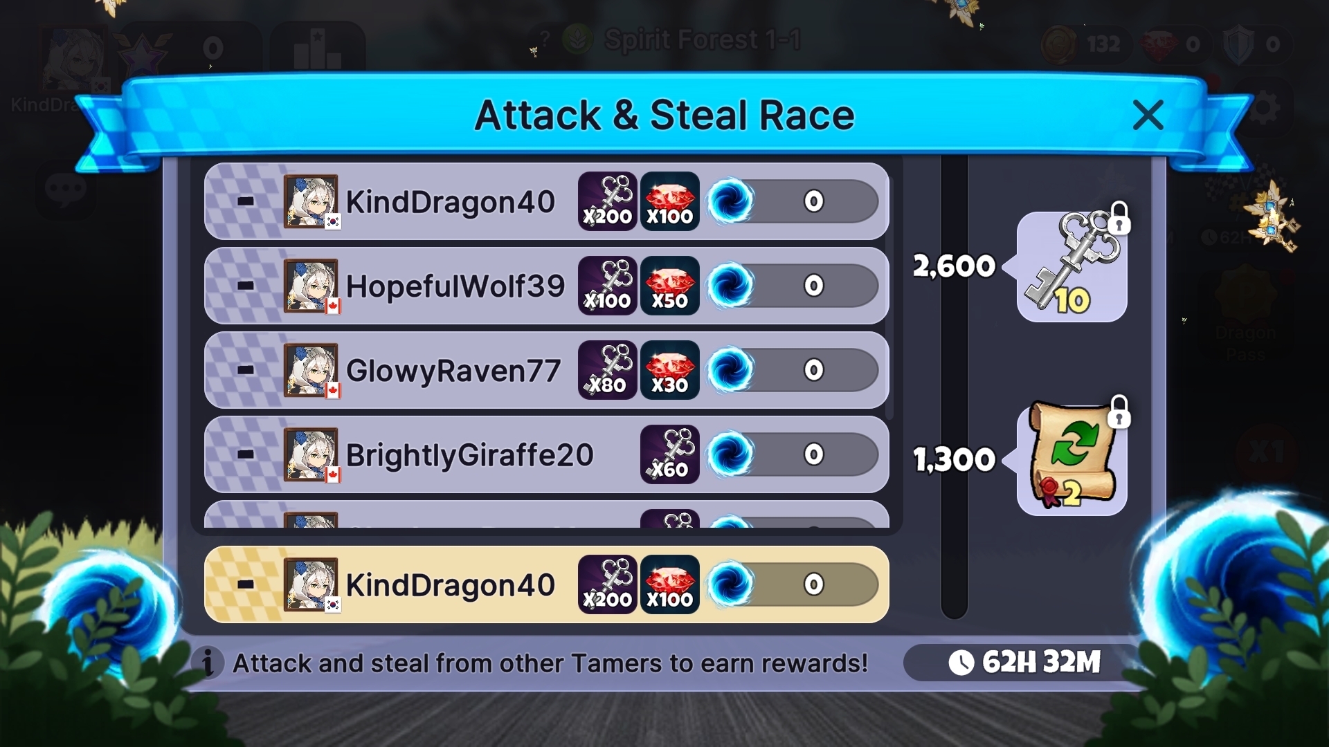 ⑤ 공격&약탈 레이스 - 럼블 머신을 돌리고 다른 테이머를 공격 또는 약탈할 경우 포인트가 지급됩니다. - 공격 시 50 포인트 획득 - 약탈 시 100 포인트 획득 |