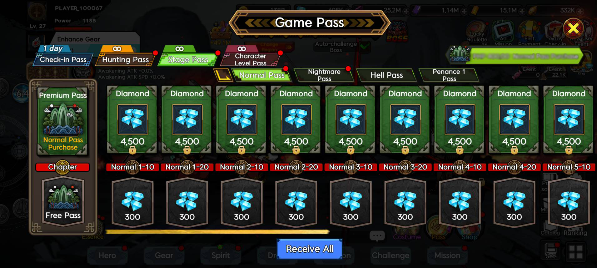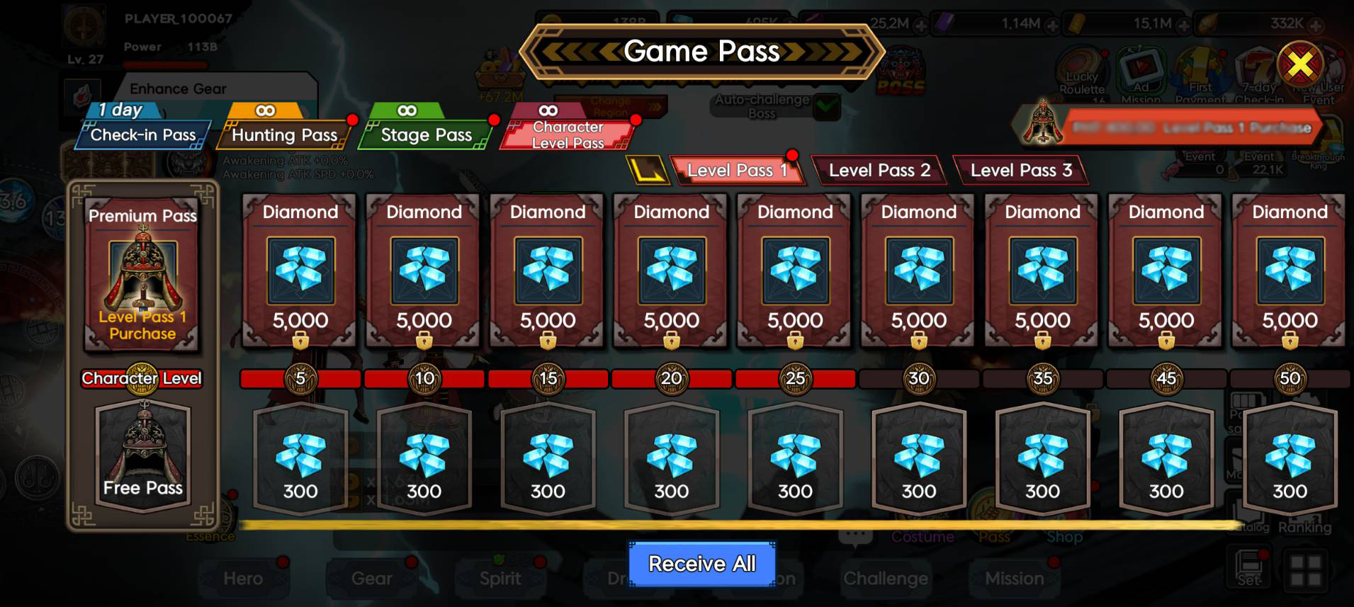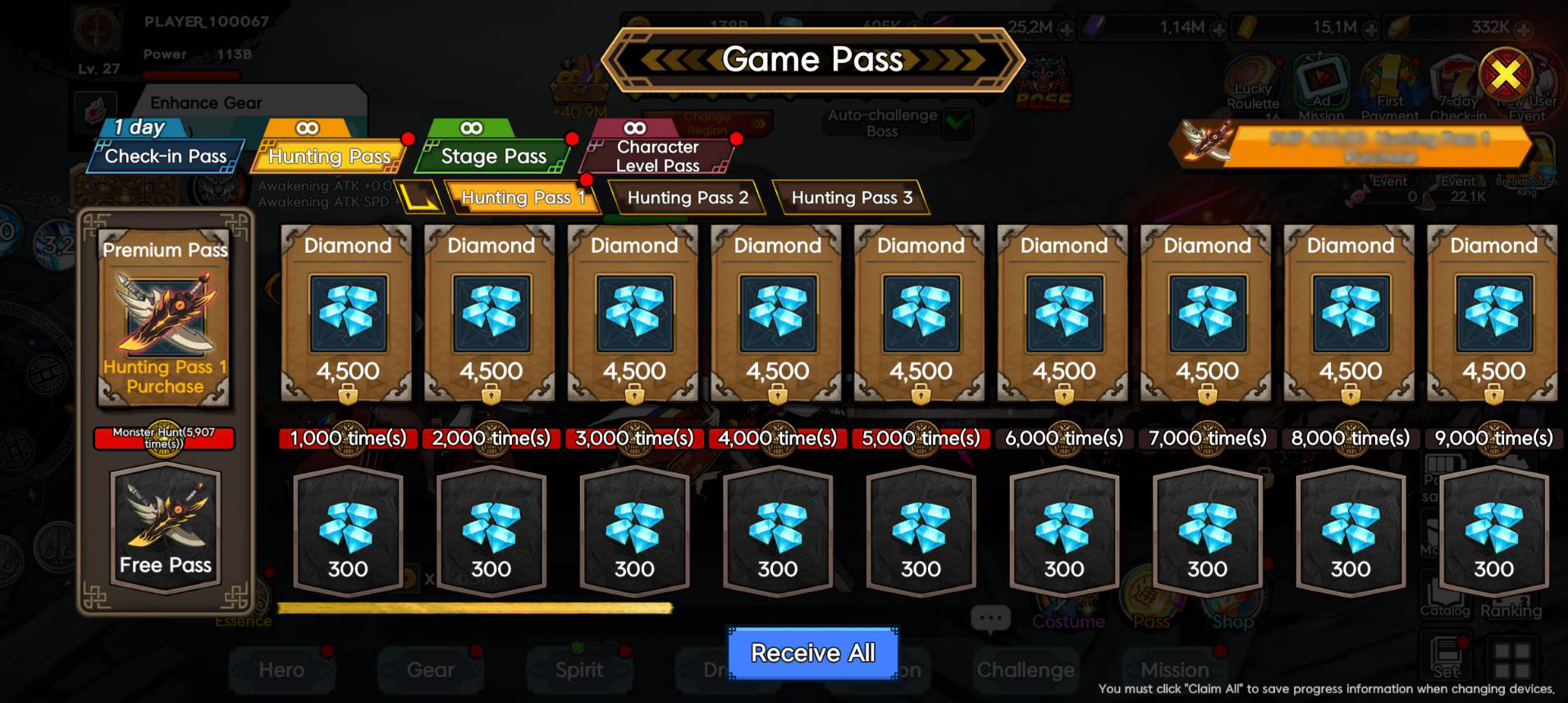 - 2. Hunting Pass - provides rewards based on defeating monsters during gameplay.