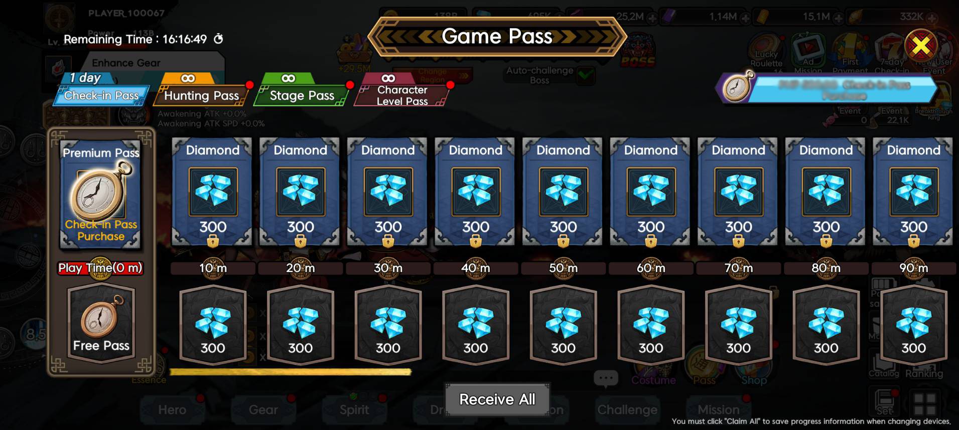 - 1. Check-in Pass - the rewards are based on your in-game playtime.