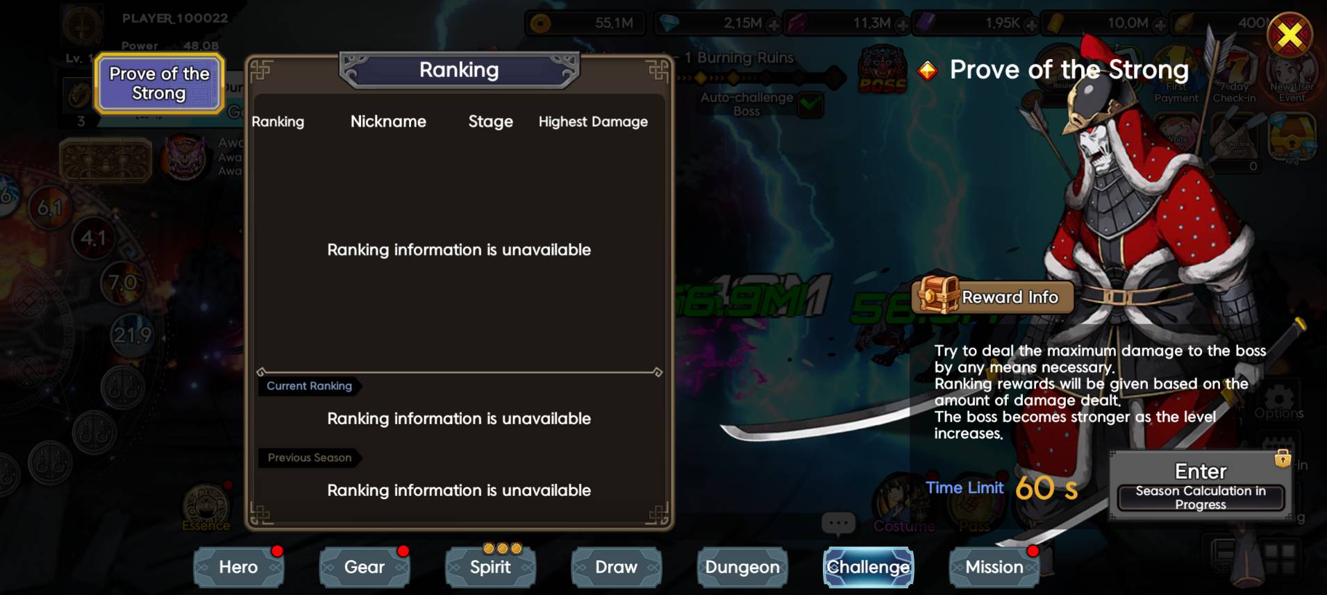 - • The Challenge Feature allows you to test your skills and compete for rankings by defeating powerful enemies in different modes. See details below for more information.