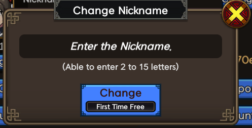 Note: Nicknames must be 2-15 characters long. Changing your nickname for the first time is free; subsequent changes will cost 10,000 diamonds.