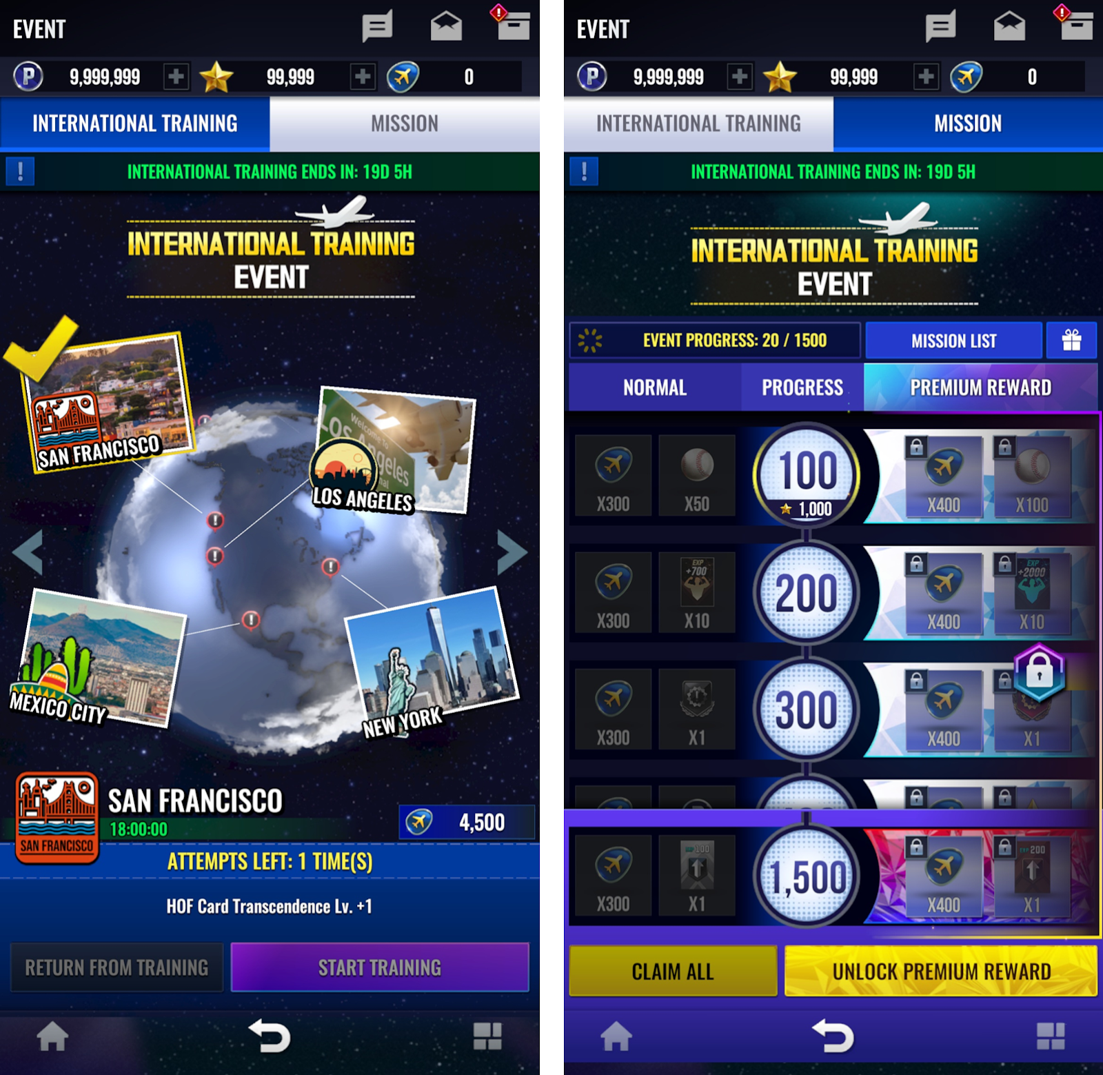- Earn [International Training Tokens] by completing missions, and use them to develop selected player cards at designated International Training locations.