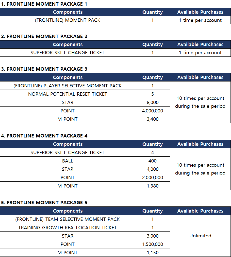 - Frontline Moment Package 1 and 2 can be purchased with Stars.