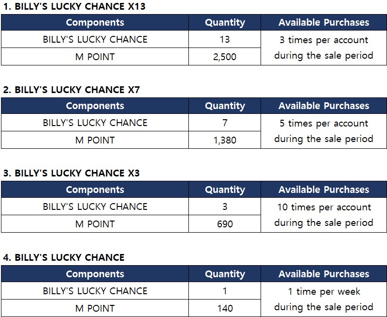 ■ Billy's Lucky Chance Bundle Package Sale Details