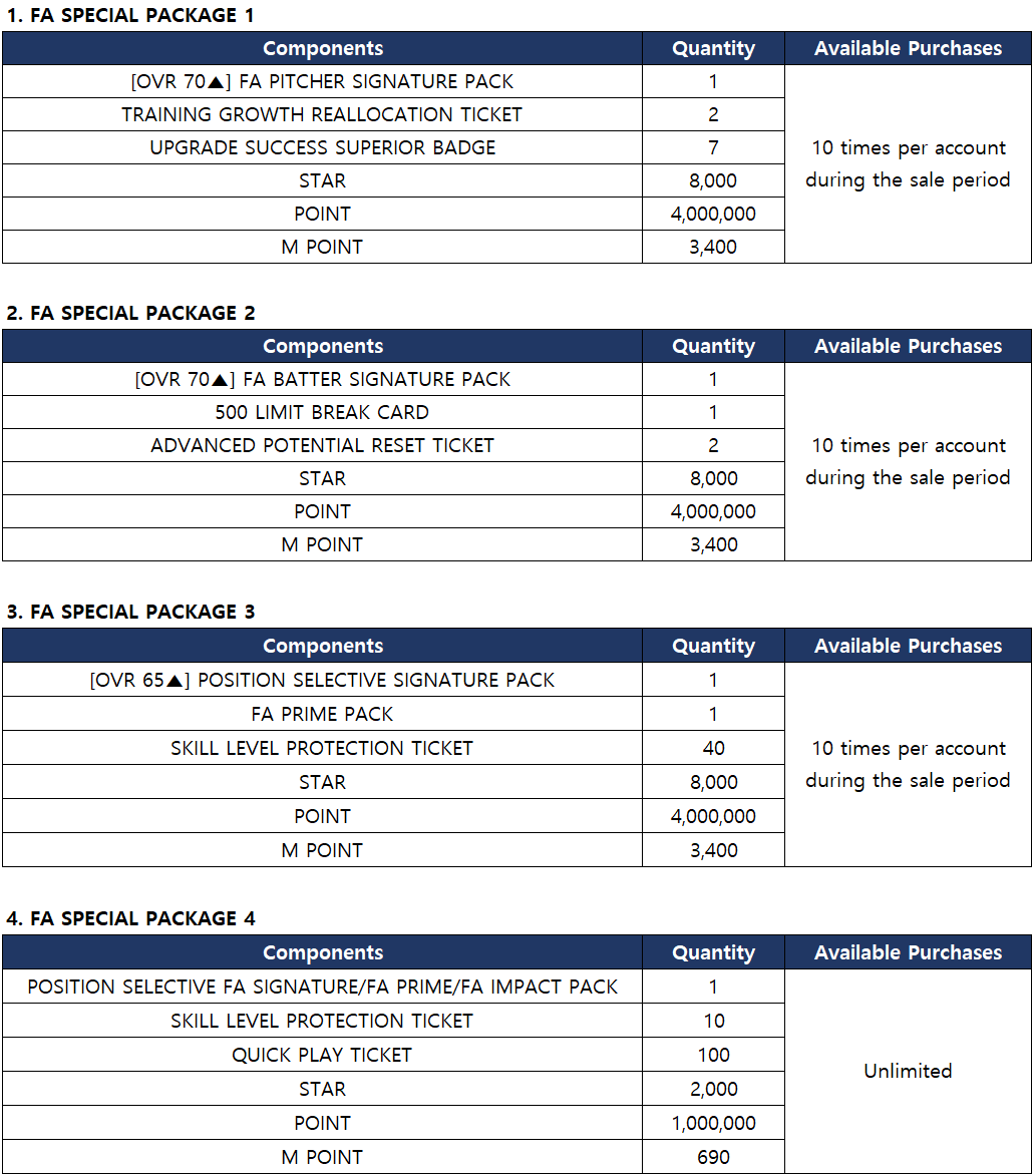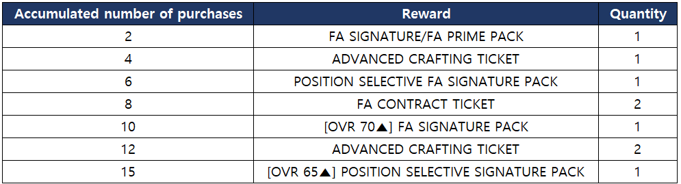 - The following rewards can be obtained based on the number of FA Special Packages you purchased in total.