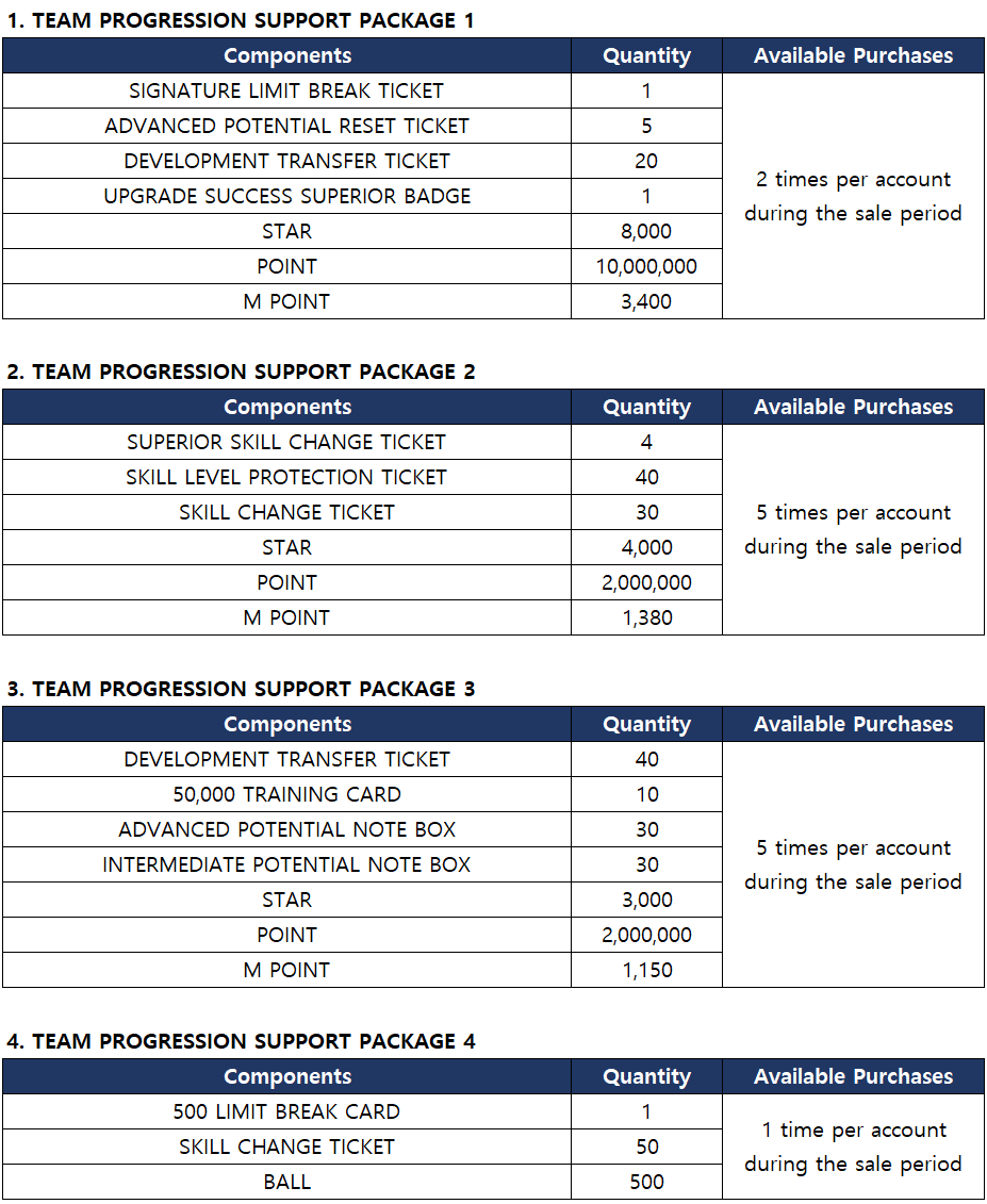 - Team Progression Support Package 4 can be purchased with 6,000 Stars.