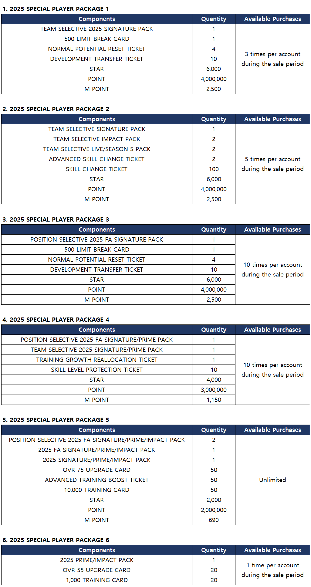 - 2025 Special Player Package 6 can be purchased with 1,000,000 Points.
