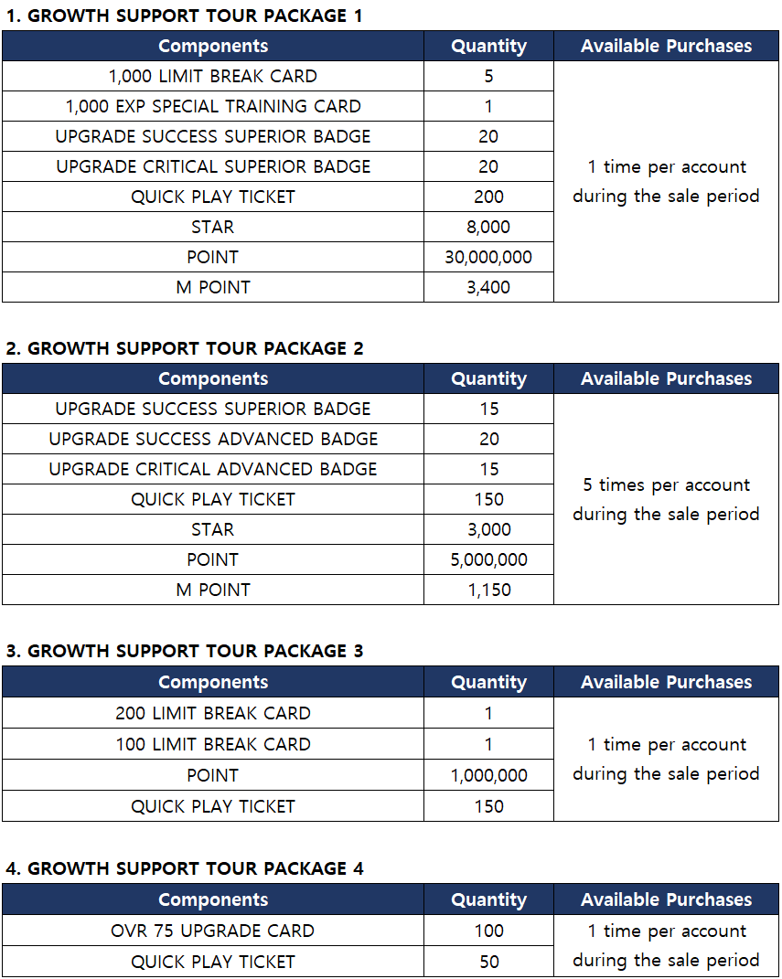 - Growth Support Tour Packages 3 and 4 can be purchased with Stars and Points.