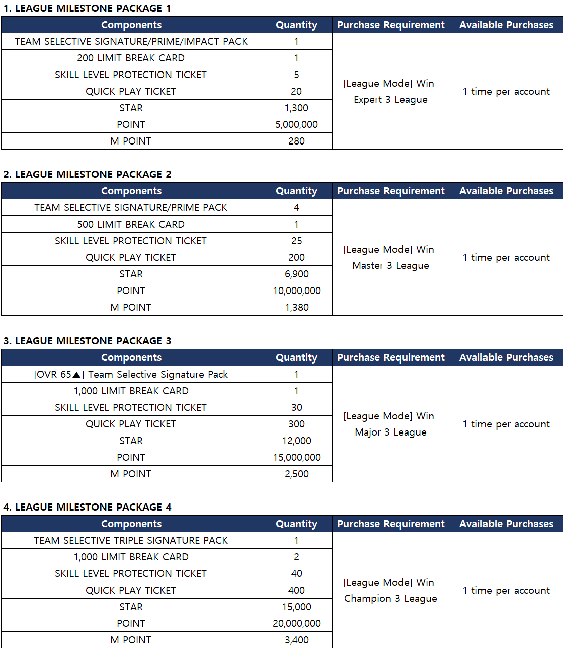 ■ League Milestone Package Sale Details