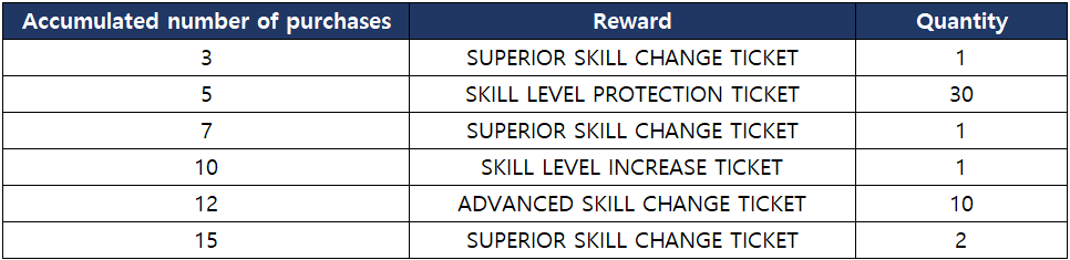 - The following rewards can be obtained based on the number of Skill Progression Premium Packages you purchased in total.