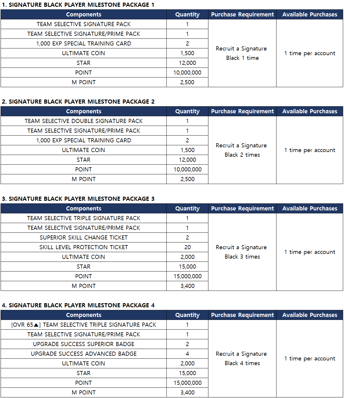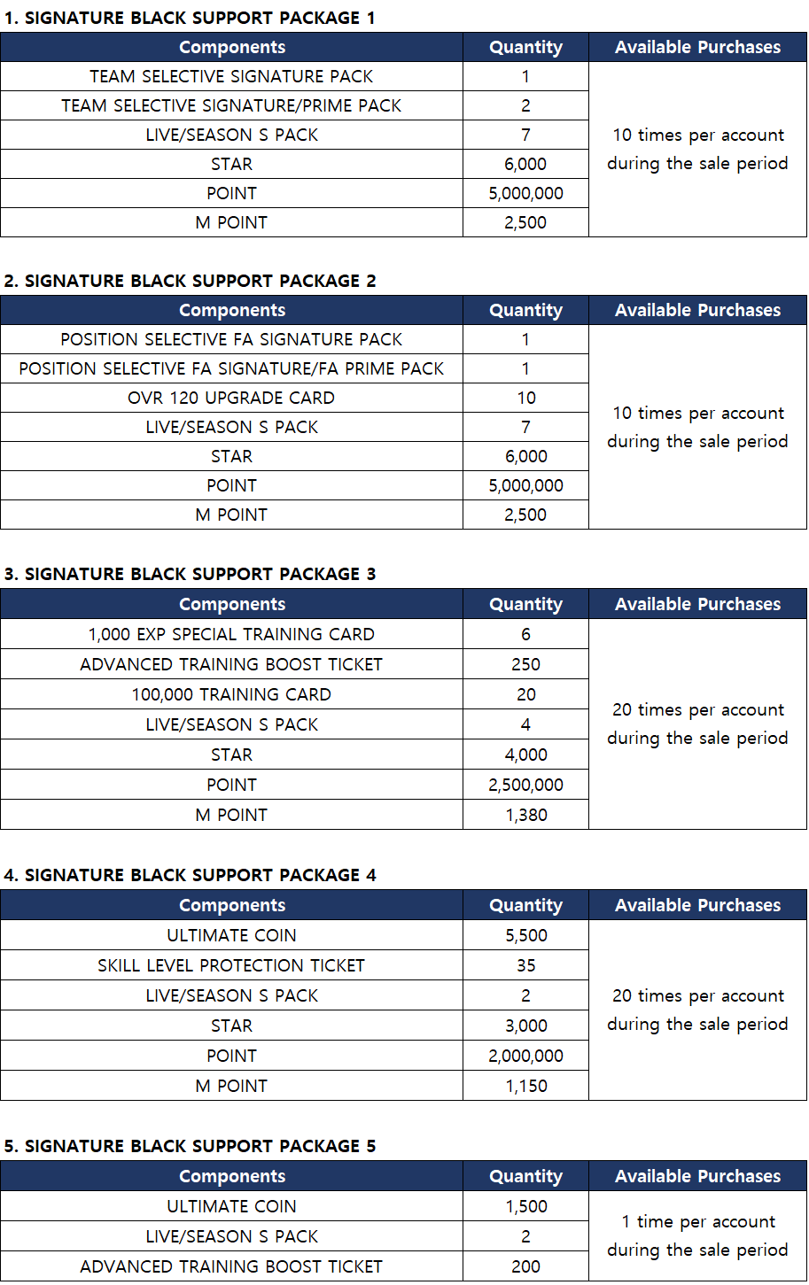 - Signature Black Support Package 5 can be purchased with 7,000 Stars.
