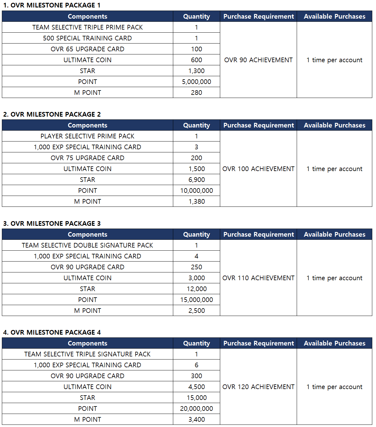 - The Milestone Package can only be purchased upon reaching a specific milestone.
