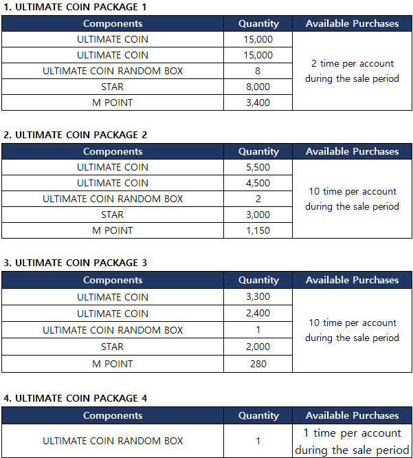 - Please note that the contents and rates of the Ultimate Coin Random Box have been changed.