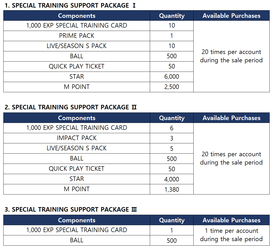 - Special Training Support Package 3 can be purchased with 3,000 Stars.