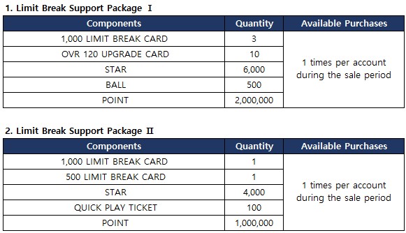Improved [Limit Break Support Package] that offers essential items for Limit Break will be available in the game.
