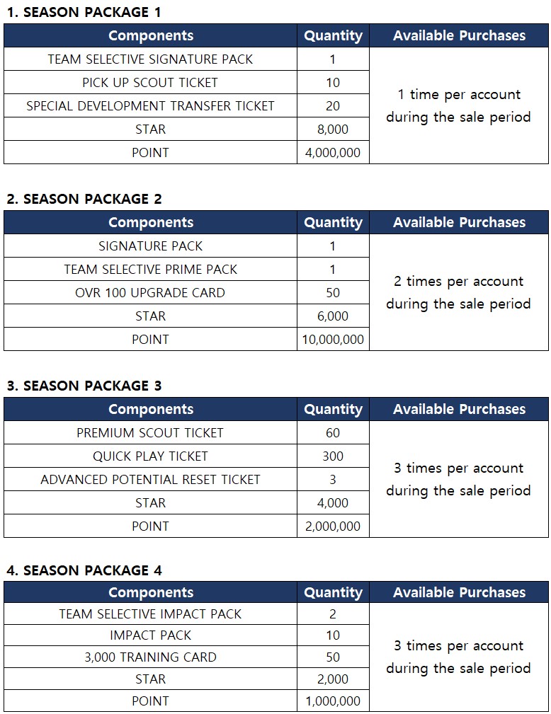 - The following rewards can be obtained based on the number of Seasonal Packages you purchased in total.