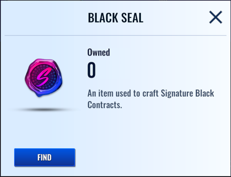 - The Signature Black Contract can be purchased at the Stadium Shop or crafted at the Workshop.