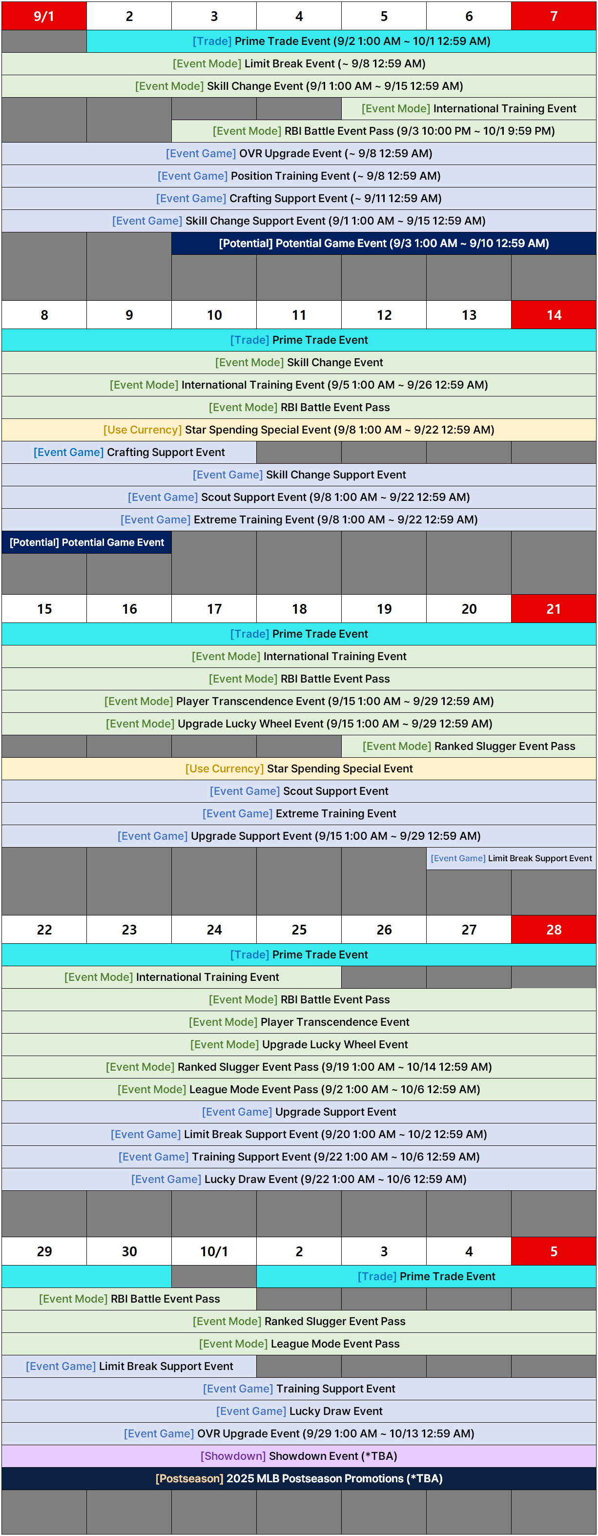 [Event] September In-game Event Schedule (Updated on 9/3 4:00 AM EDT)
