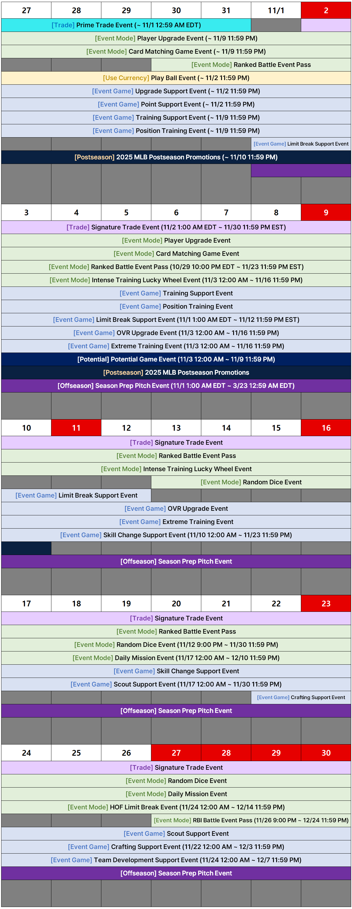 [Event] November In-game Event Schedule (Modified on 11/12 11:40 PM EST)