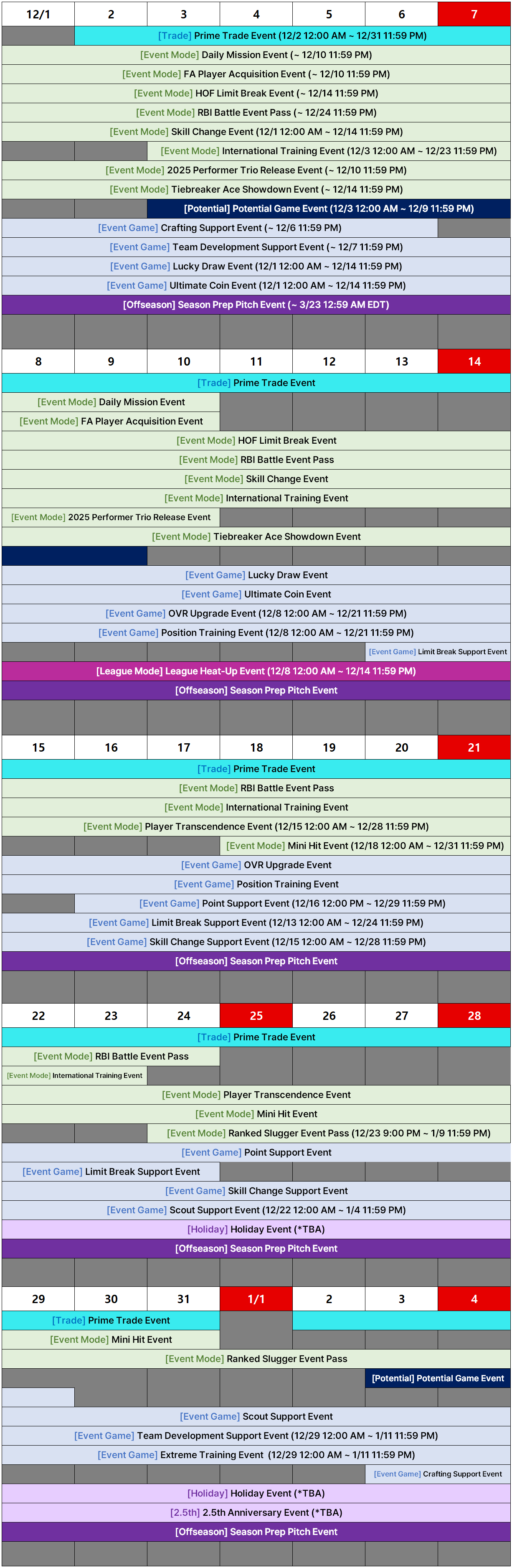 [Event] December In-game Event Schedule (Updated on 12/10 2:10 AM EST)