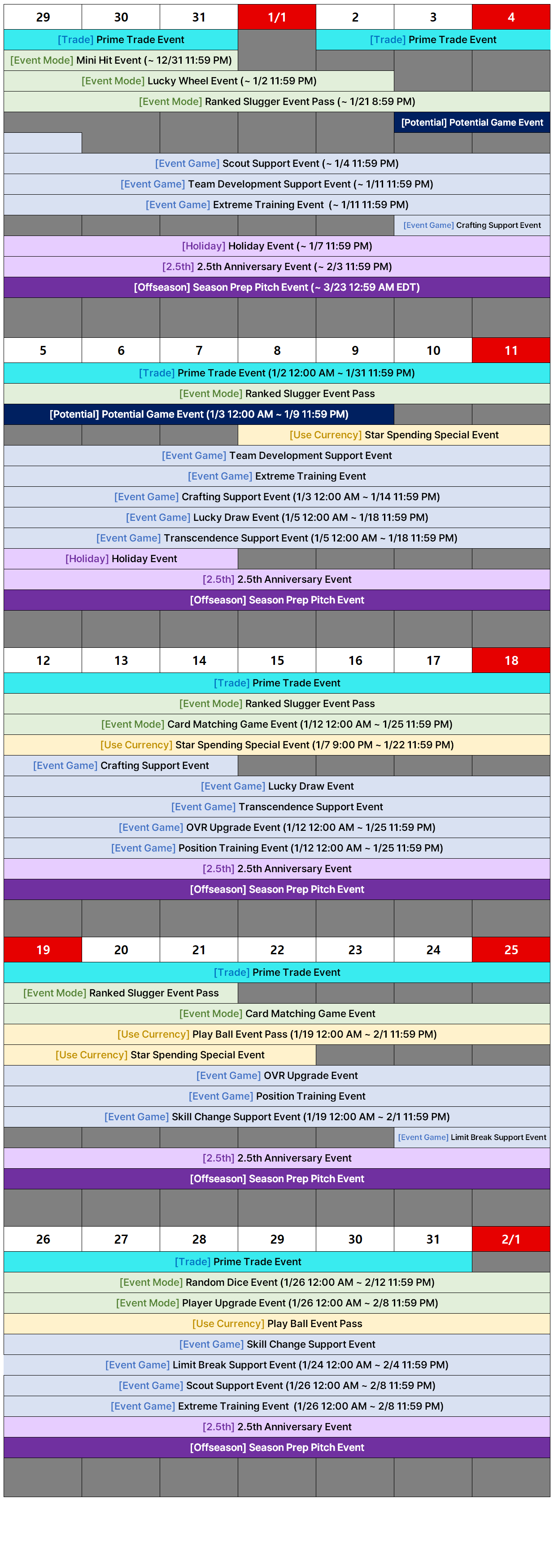 [Event] January In-game Event Schedule (Updated on Jan. 23, 5:00 AM EST)