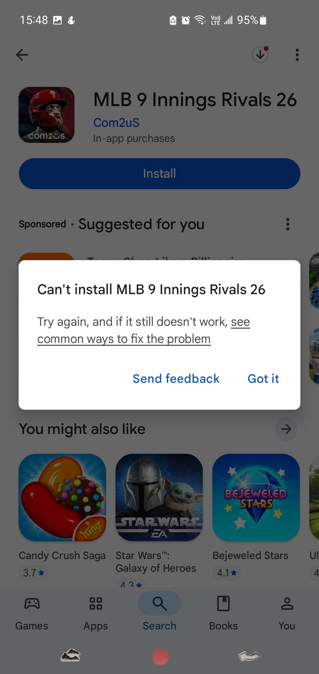 Cannot install the game from google play after update. Have IOS. Game goes downloaded and after this happens