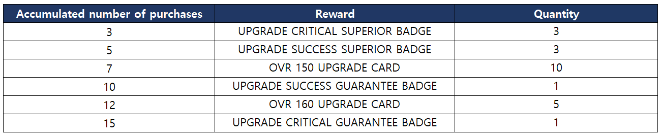 - The following rewards can be obtained based on the number Package you purchased in total.