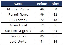 - The team of the player(s) below will be changed.