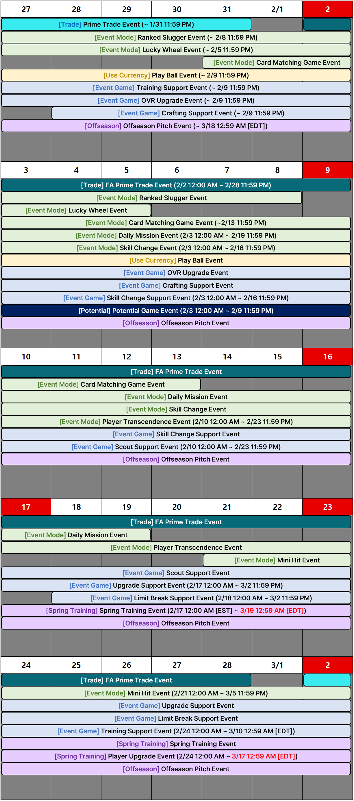 [Event] February In-game Event Schedule (Modified on 2/19)