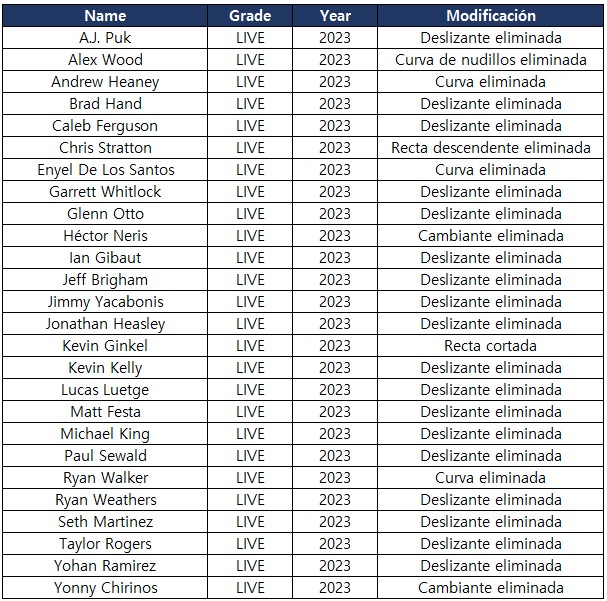 - Debido a las regulaciones de licencia de la MLB, algunos jugadores ya no estarán disponibles para ser ojeados o en paquetes de tarjetas después de la actualización.