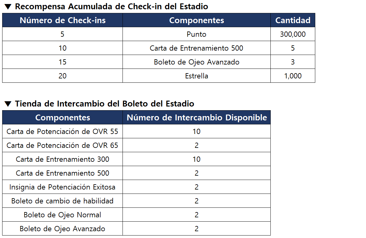 - ¡Consigue Entradas del Estadio a través del check-in y jugando, luego cámbialas por artículos que quieras!