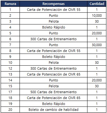 ※ El Paquete Prime de Intercambio se obtiene solo una vez al completar las 15 primeras recorridas.