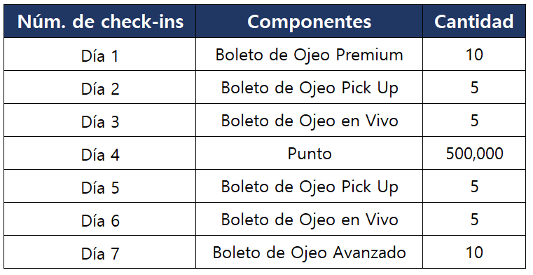 ¡Hemos preparado un evento de check-in especial que ofrece 40 boletos de ojeo, incluyendo Boletos del Ojeo Avanzado y Boletos del Ojeo Premium!