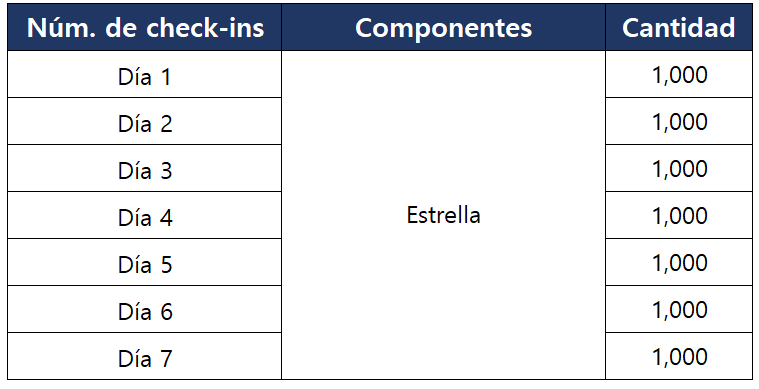 ¡Hagan el check-in en el juego durante 7 días para obtener 1.000 Estrellas cada día (7.000 Estrellas en total)!