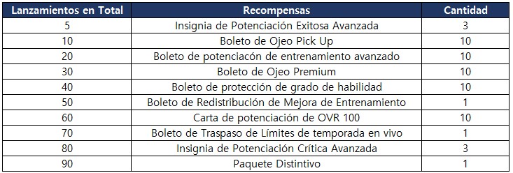 ¡Un regalo único para todos! Hemos preparado un evento de fuera de temporada en el que podrás obtener hasta un [Paquete Distintivo] para aumentar el OVR de tu equipo.
